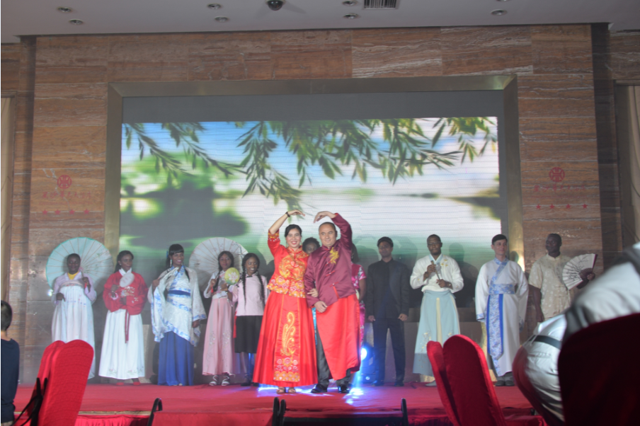 发展中国家玉米班学员们的舞蹈拉开了文化节的序幕,健康亲民的广场舞与热情洋溢的非洲舞完美结合,瞬间点燃了全场观众的热情。随后是各国学员们的中国传统服装秀,旗袍、襦裙、唐装、汉服、中山装、秀禾服,不同肤色的学员将中国传统服装的韵味演绎得淋淋尽致,一颦一笑和舞台走姿极具中国风情,全场掌声和欢呼声不断。