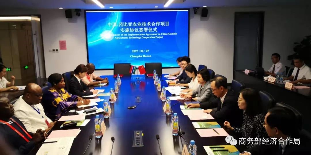 6月26日,商务部经济合作局艾音方副局长在长沙会见前来参加中非经贸博览会的冈比亚农业部部长艾米•法布瑞。双方签署了援冈比亚农业技术援助项目实施协议。