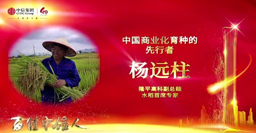 11月8日,庆祝中信集团成立40周年大会在北京隆重举行,会议公布了第二届“百佳中信人”名单并予以表彰,其中,“百佳中信人·特别奖”两名,隆平高科副总裁、水稻首席专家杨远柱光荣入选,并被评为“中国商业化育种的先行者”。中信集团党委副书记、副董事长、总经理王炯为杨远柱等获奖者颁奖。