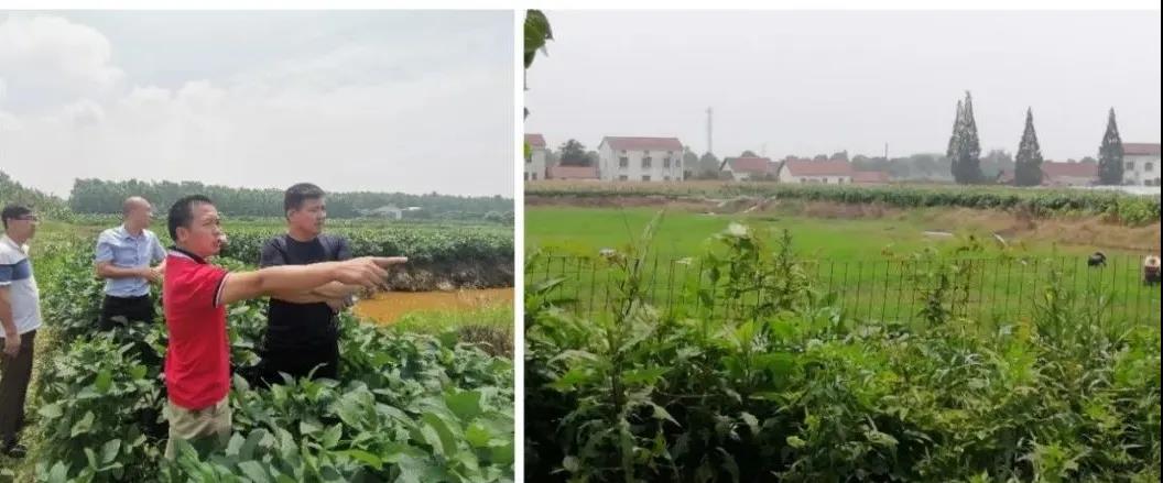 △ 岳阳市君山区柳林洲镇,80多亩超级稻隆两优1308虾稻田遭遇水淹,田块也不平整,亚华种业的农技专家现场建议农户排水晒田,移密补稀,5-7天活蔸后再追肥。