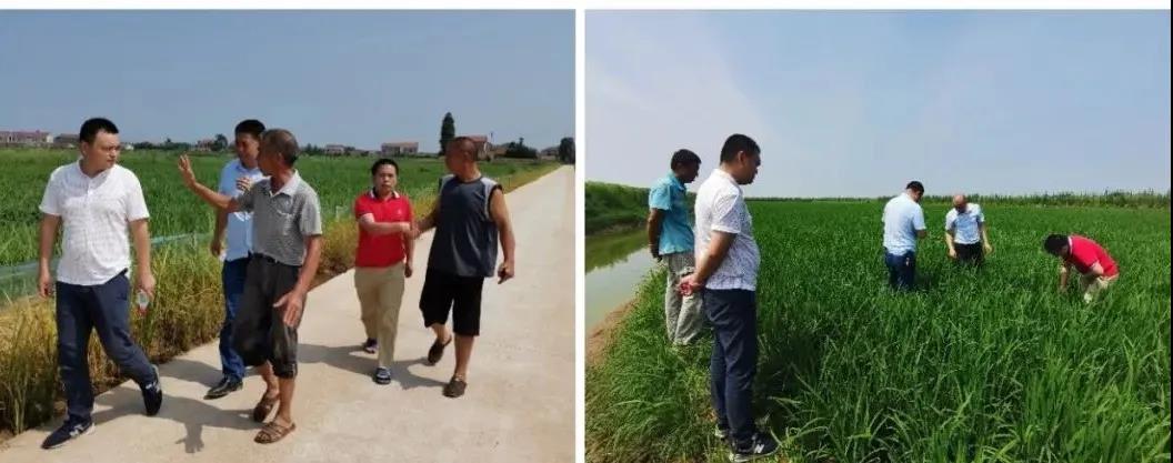 △ 安徽省桐城市新渡镇,种植大户刘玉福的田块近期被淹四次,水稻生长、分蘖情况不佳,并感染细菌性基腐病,隆平种业农技专家来到田间,积极帮助刘玉田开展淹后田间管理工作,并及时采取补救措施。