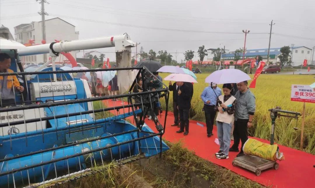 在四川大邑县分会场,大邑县种子管理站领导张东平、大邑县安仁镇农业综合服务中心主任罗厅、广汉米企四川金禾隆农业有限公司负责人金小春等来到大邑县高山镇种植大户张亚林种植的晶两优1377的200亩稻田,共同见证丰收。广汉米企四川金禾隆现场与四川隆平签订粮食收购协议,并承诺高于市场价收购晶两优1377,为该区域的种植大户提供了销售保障。
